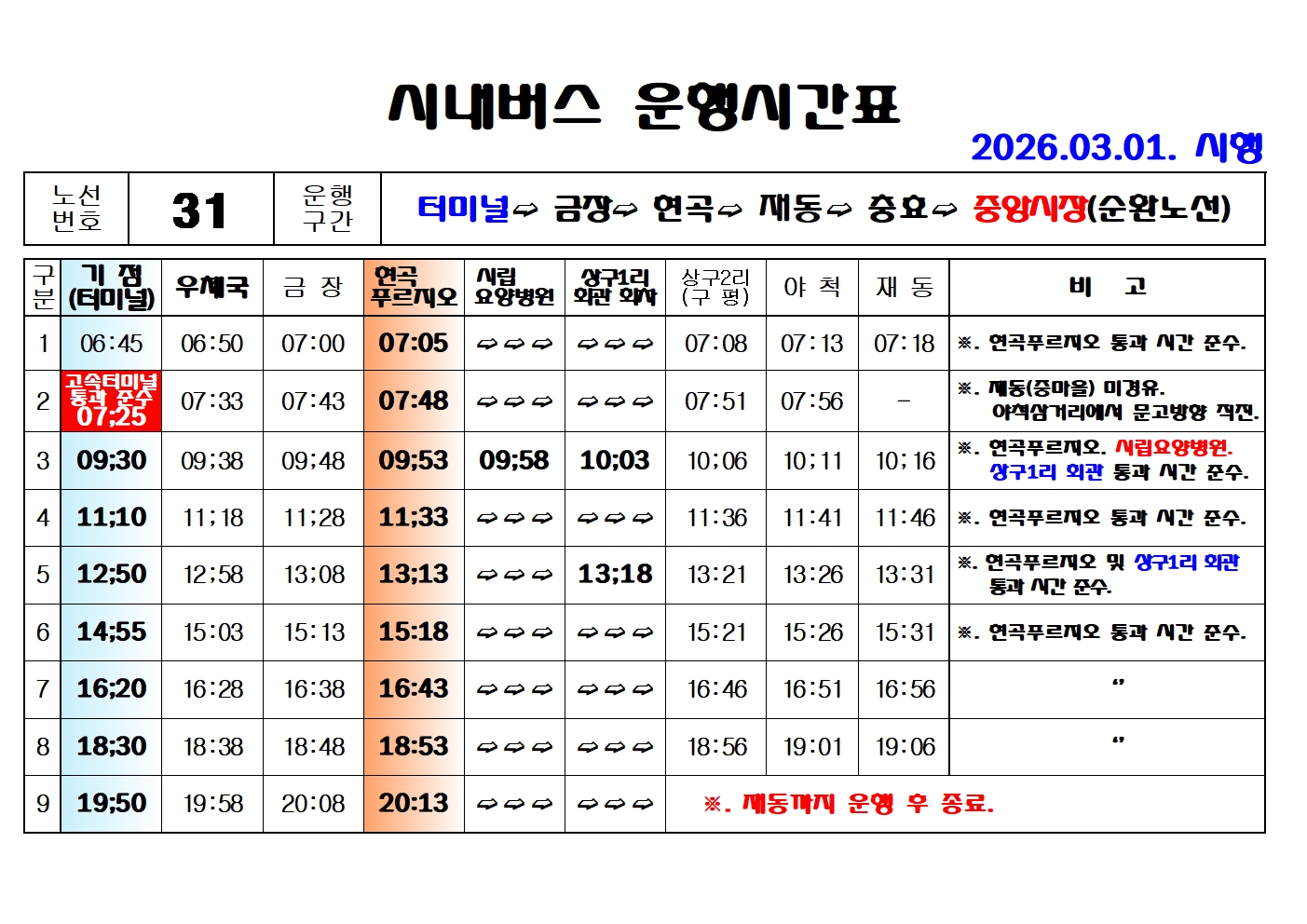 (º¯°æ ½Ã°£Ç¥) 31¹ø ¿îÇà½Ã°£Ç¥ º¯°æ ¾È³» (26³â 03¿ù 01ÀÏ ½ÃÇà)